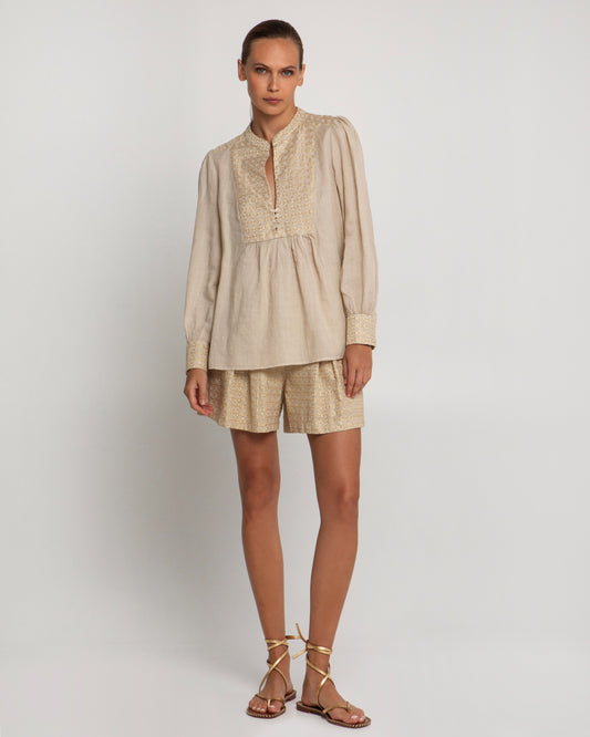 Greek Archaic Kori linen paisley shorts