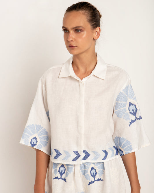 ΕξαντλήθηκεGreek Archaic Kori λινό σορτς paisley