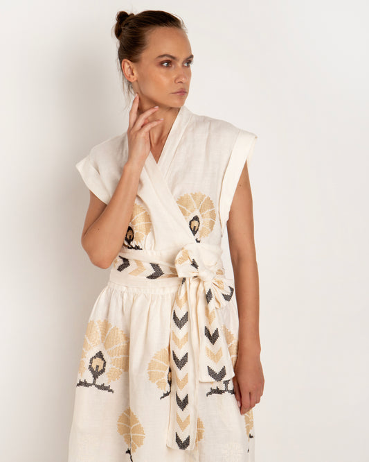 Greek Archaic Kori λινό φόρεμα με δέσιμο στο λαιμό